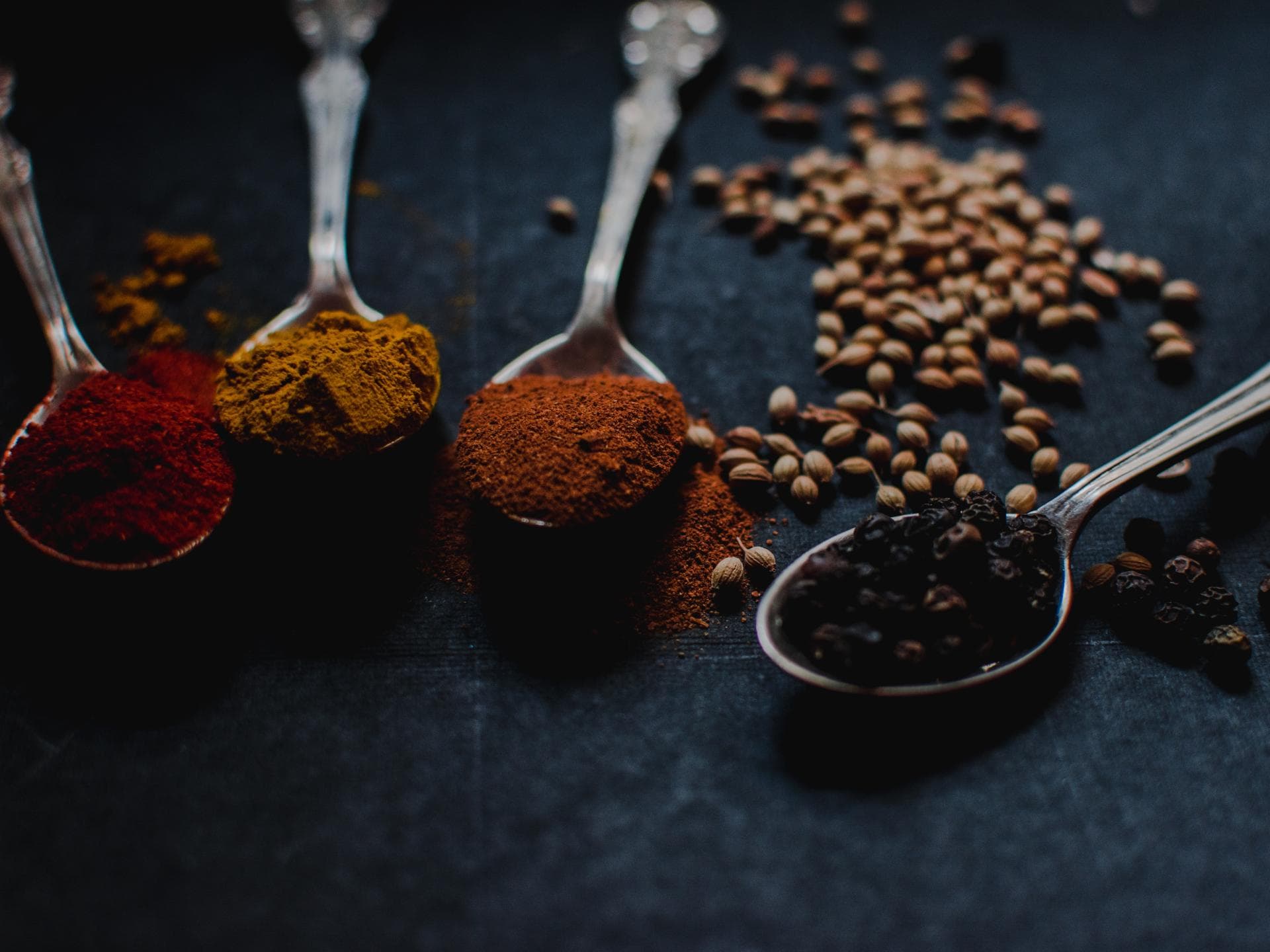 Gewürze: Koriander, Cumin, Ingwer (in kleinen Mengen), Gelbwurz, Safran, Fenchel, Zimt, Nelken, Kardamom